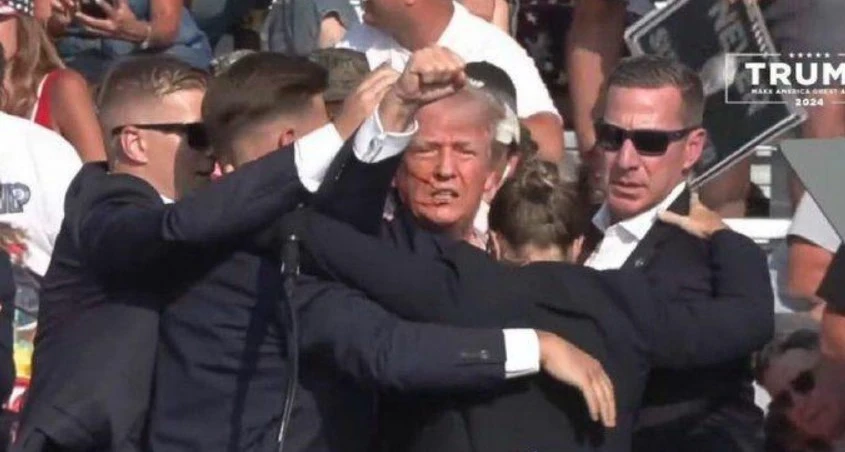 Plusieurs détonations fortes ont été entendues alors que Trump prononçait un discours dans la ville de Butler. Trump est rapidement tombé au sol et a été protégé par son équipe de sécurité.