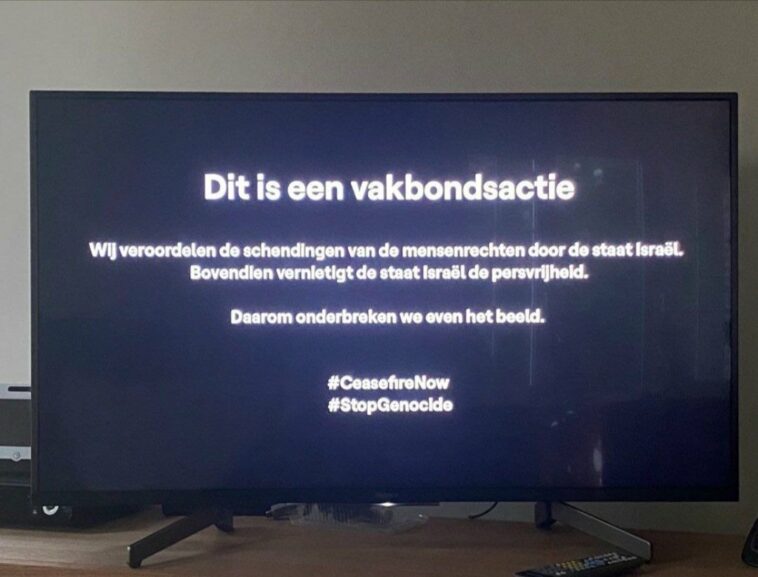 « Il s’agit d’une action syndicale. Nous condamnons les violations des droits de l’homme commises par l’Etat d’Israël. De plus, l’État d’Israël détruit la liberté de la presse. C’est pourquoi nous arrêtons un instant l’image.